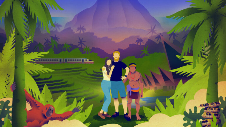Dozvíte se, jaké to je putovat tropickým deštným lesem, pobývat s kmenem lovců a sběračů a dýchat síru pod mocnými vulkány i v dopravních zácpách.